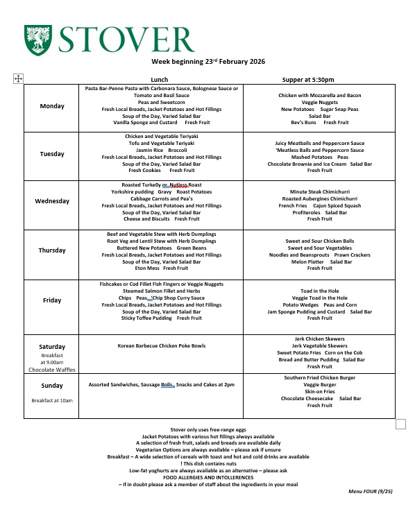 Active growing children and young people require plenty of wholesome food and regular meals. At Stover, we believe that we can offer something that will satisfy everyone. We use as much fresh food as possible with our menus linked to seasonal produce. We work with our suppliers to make as much use as appropriate of natural food products and to eliminate GM food and potentially harmful food additives. We ensure that our suppliers both local and national are committed to providing the best quality and value with high standards of health and safety.