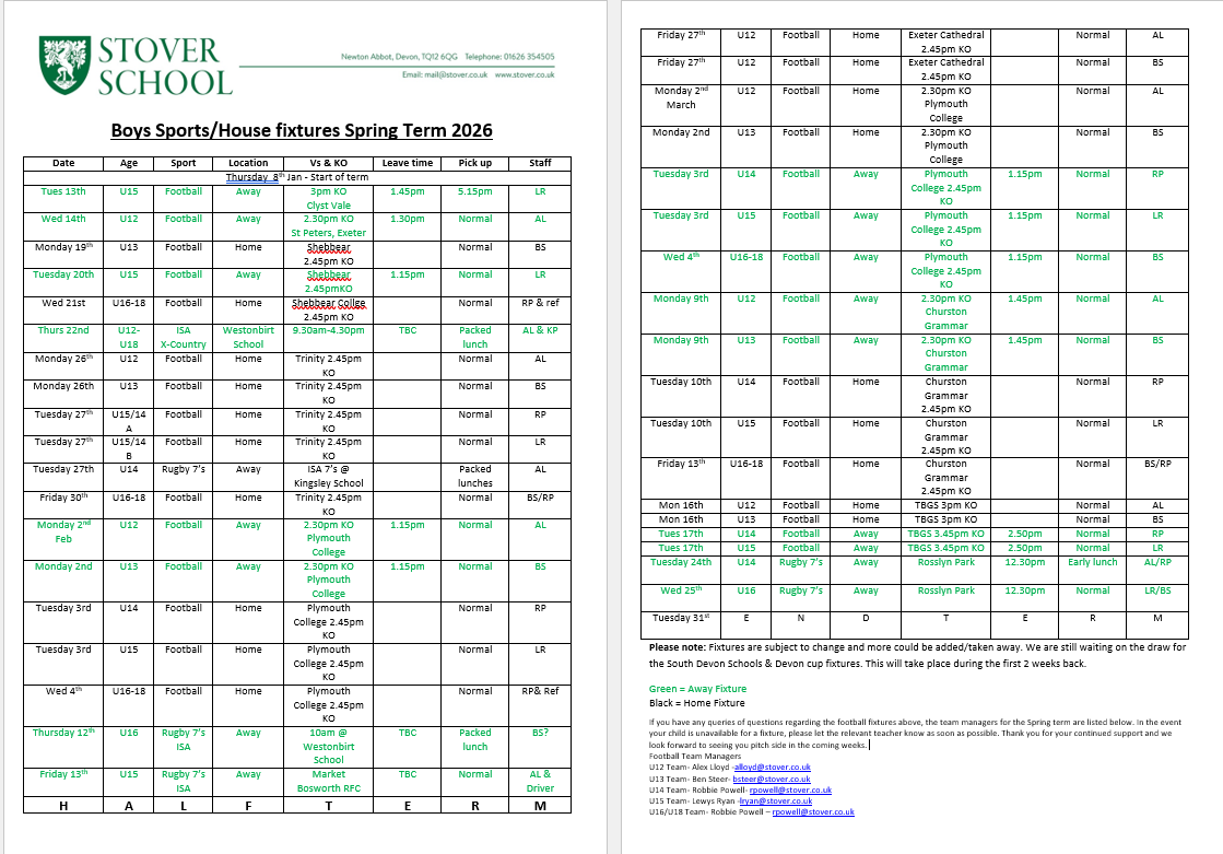 Sports Fixtures